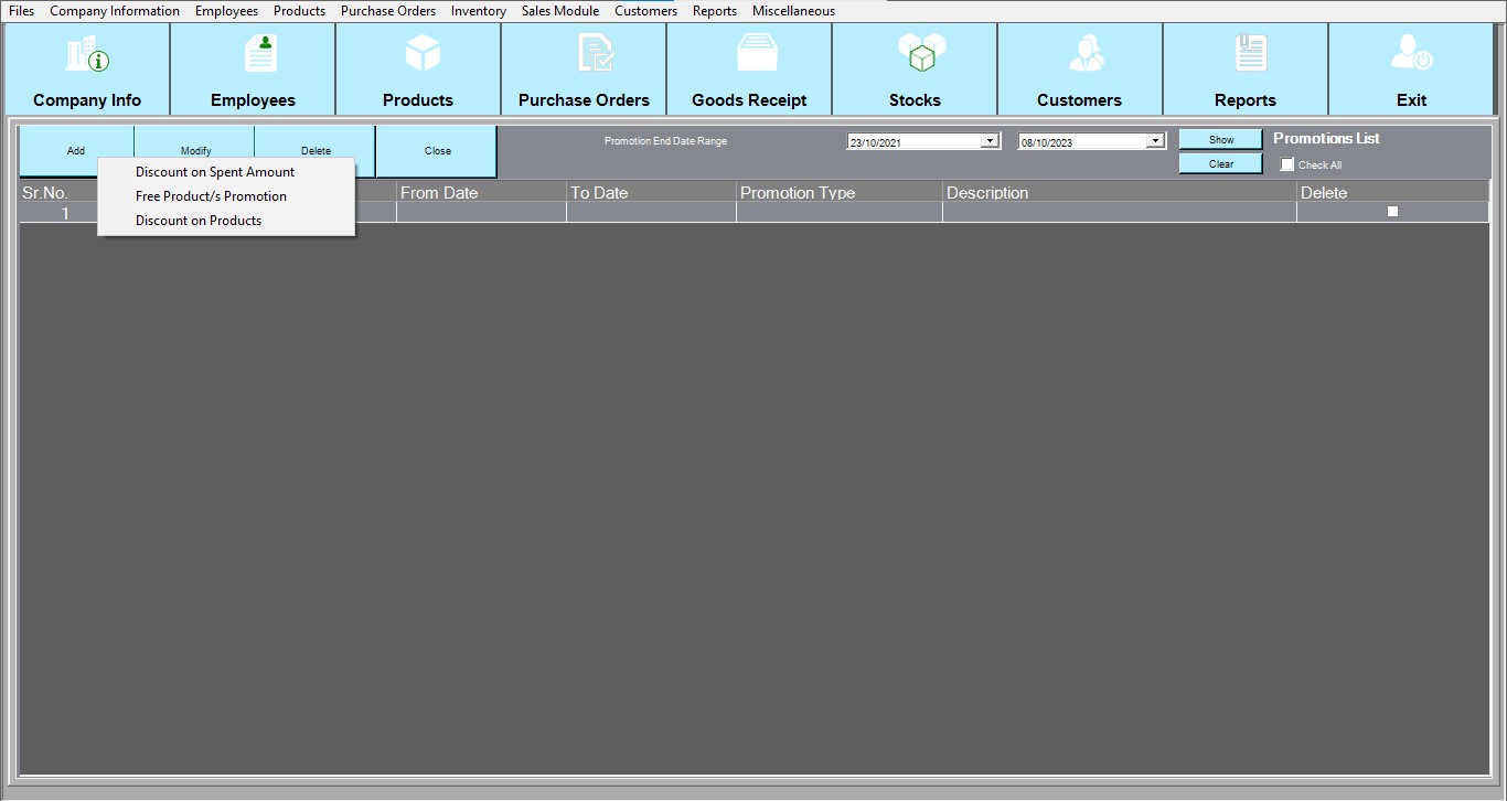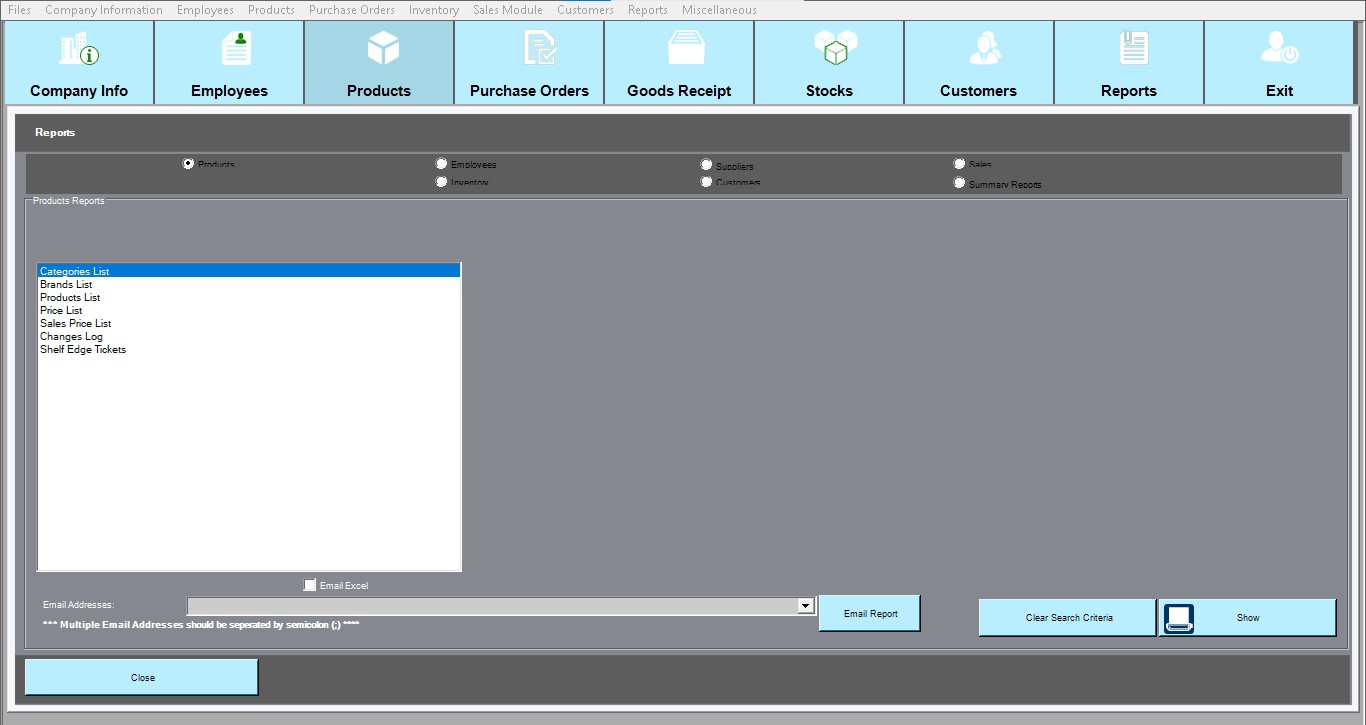 The reports can be filtered in various aspects and to view each report module first select the module of your choice then click on the show button to view and close button to exit the report.