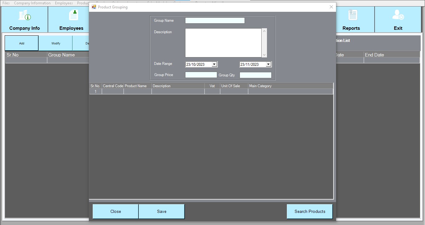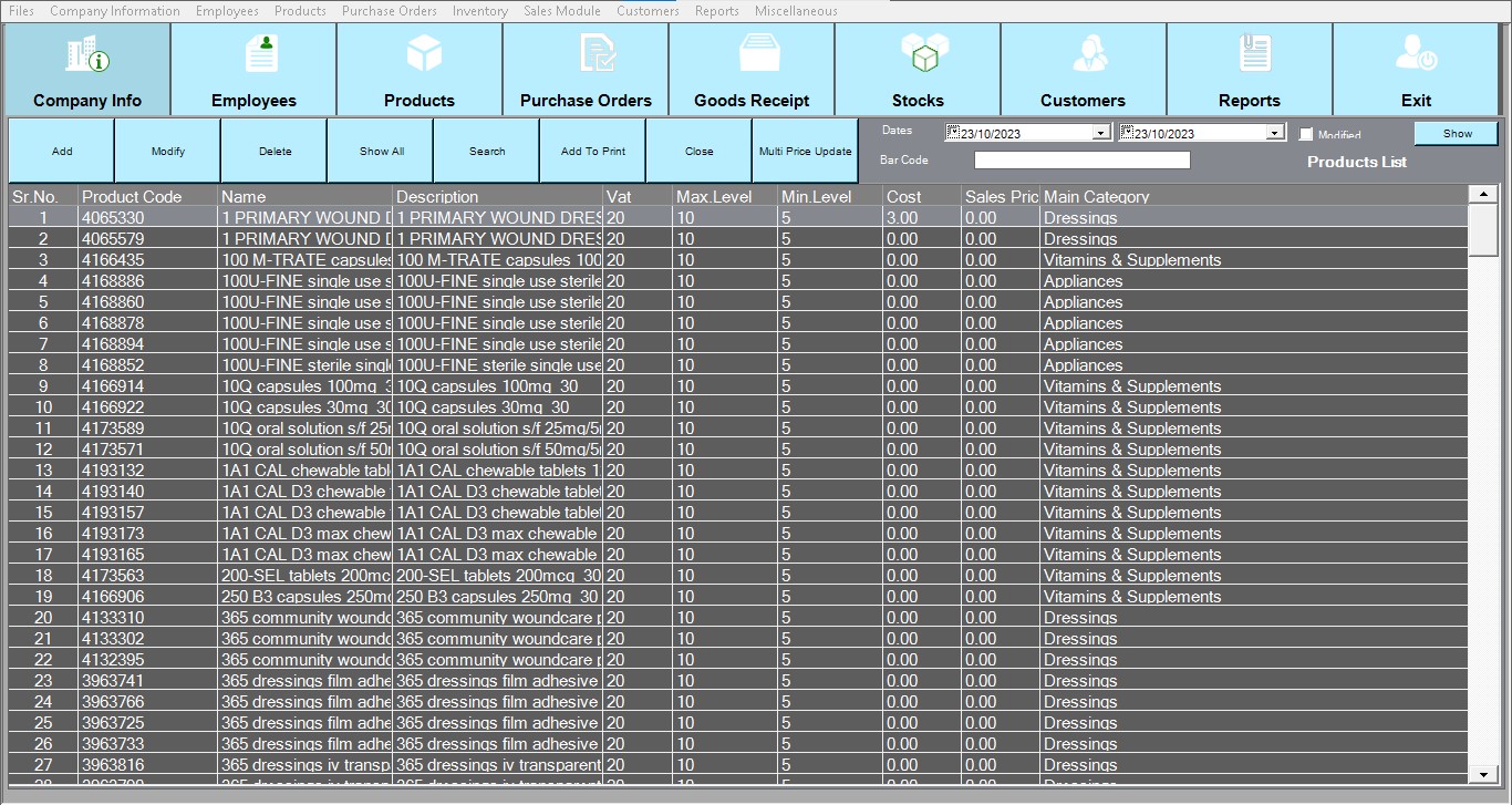 Here you can add your products, bar code and selling price after adding all the details of the product by default these products will be showing on the retail till software.