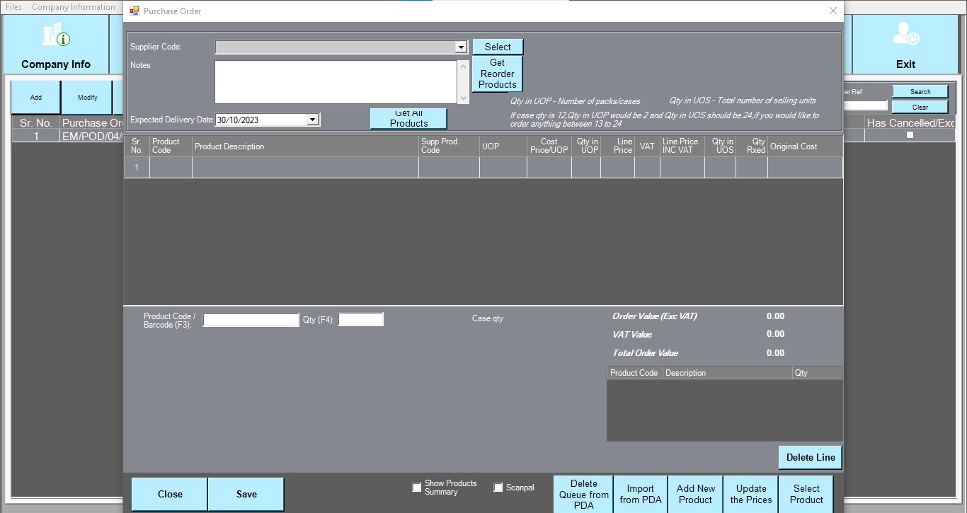 - Back order; Will allow you to view your purchased order record for that adding product once purchase orders are raised against the product, the product back order is recorded under back order until the stock is received, to check the existing back orders against the product click view orders.