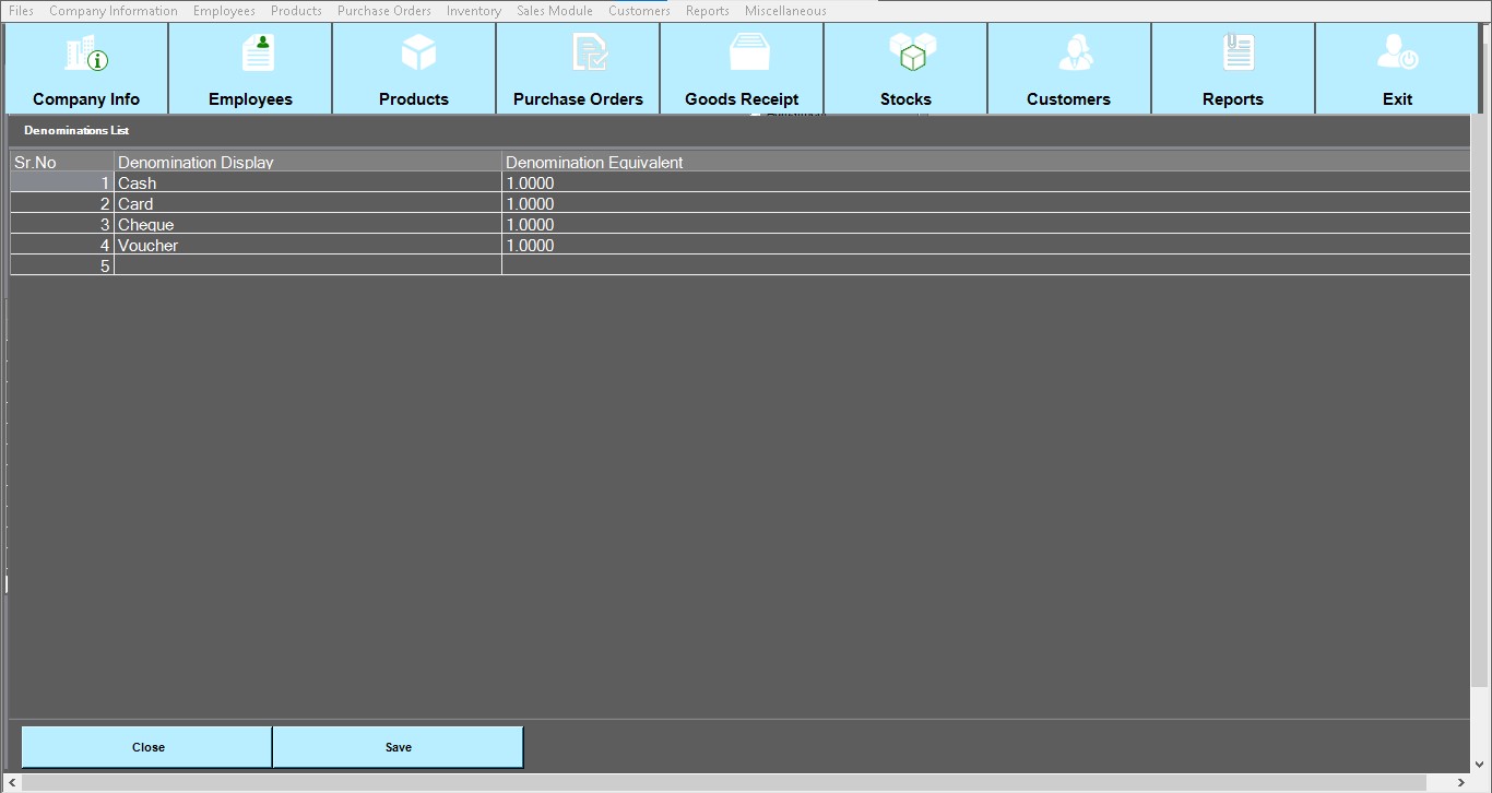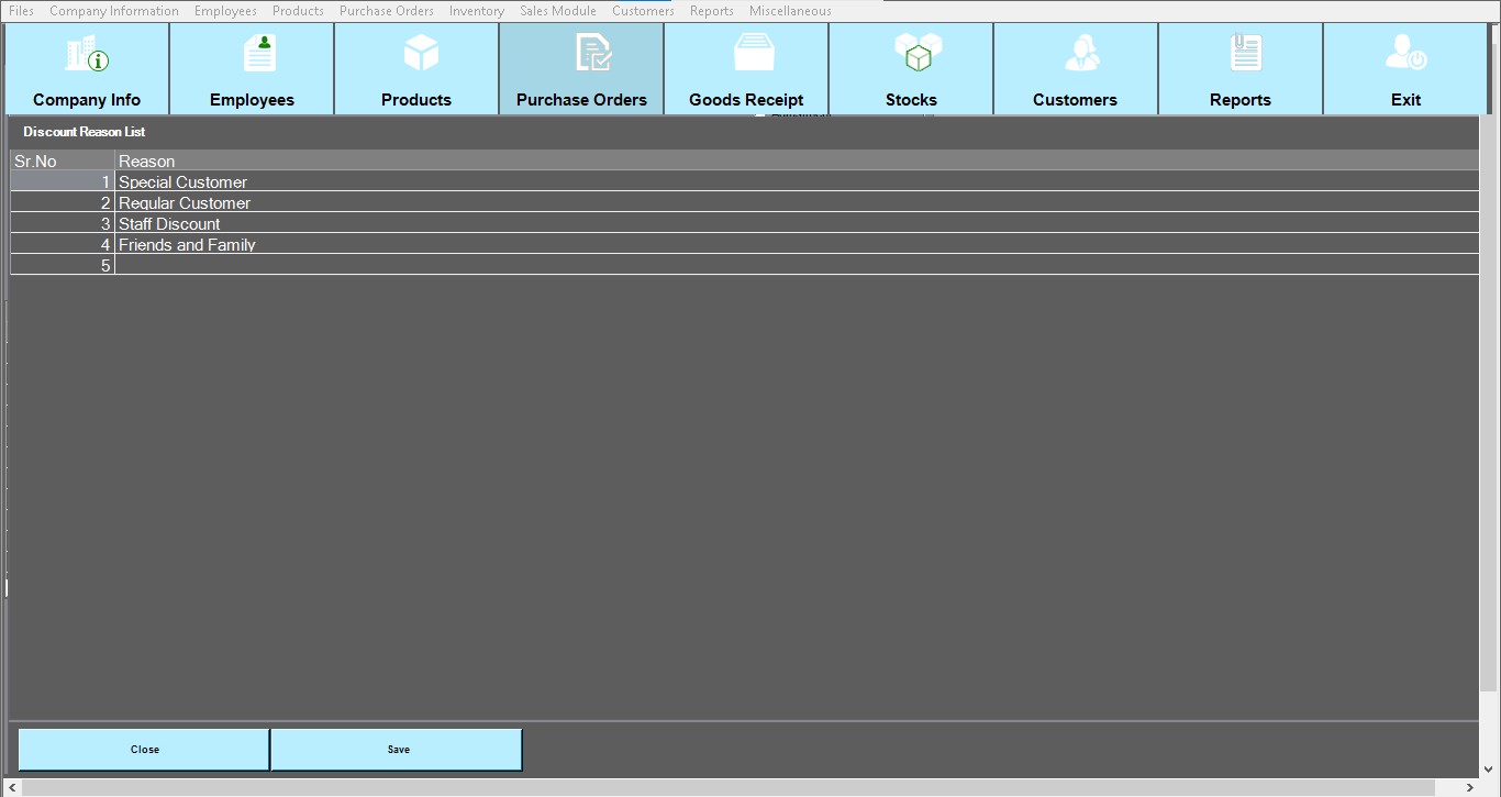 Notes: If you do not want to give access or permission to the employees you then have to unticked each box option of that module. For example on the sale module, option such as end of day, no sale, dales summary, refund, petty cash and discount. These option can also be restricted from the retail admin software from the employees' module on access right