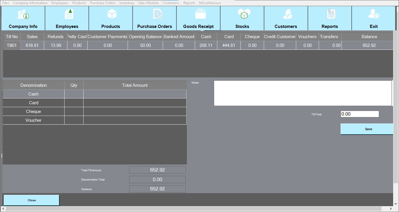 Notes: The till settings can also be set it from the retail till from the till admin option on till setting module.