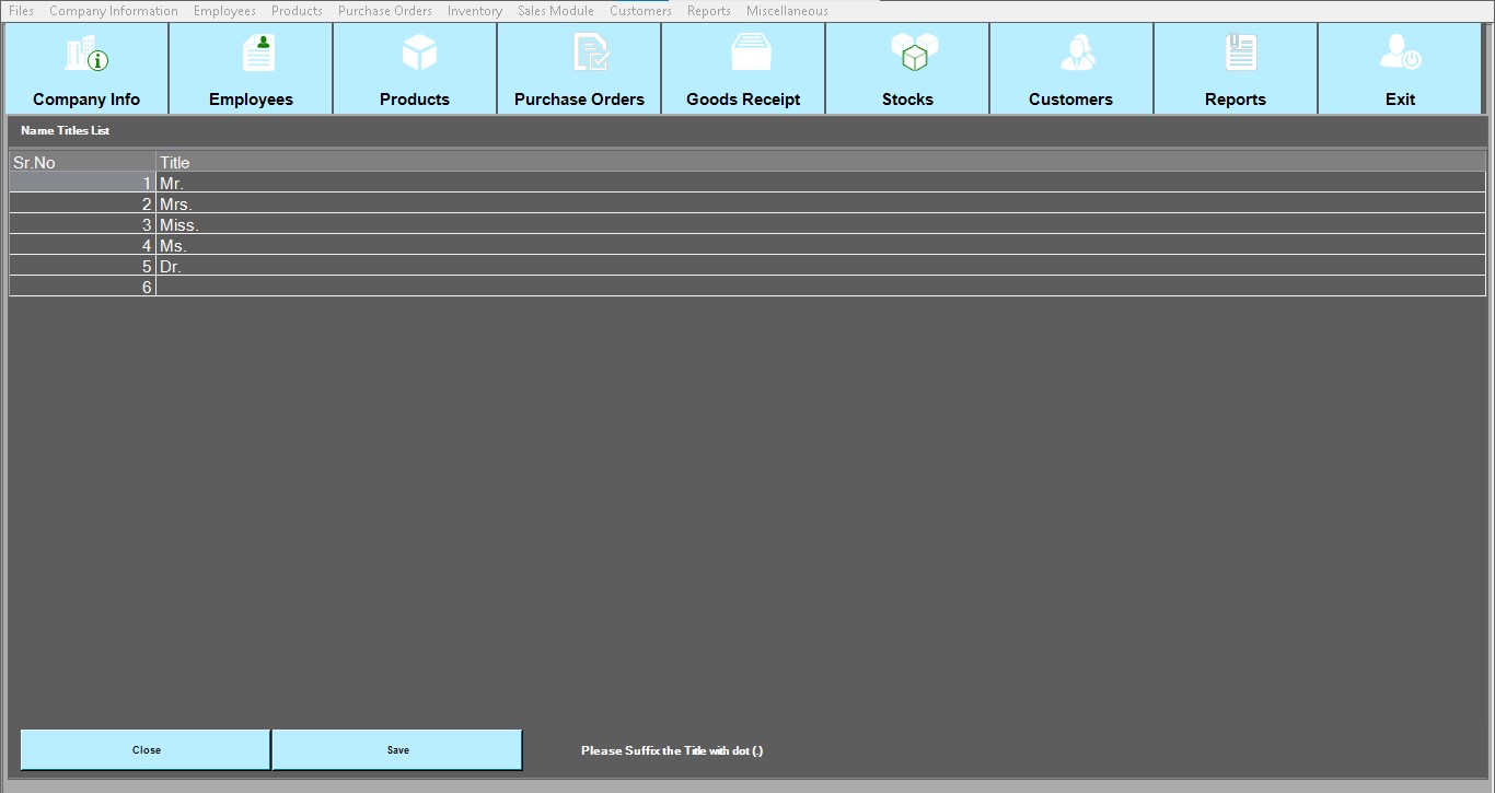 This option allows you to create the initial title such as Mr, Mrs, Miss, Lord and Queen.