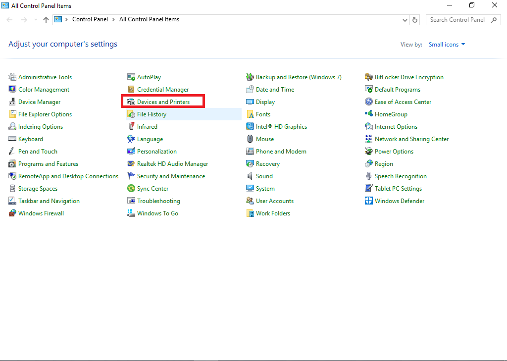 Go to Control Panel and Select Devices and Printers