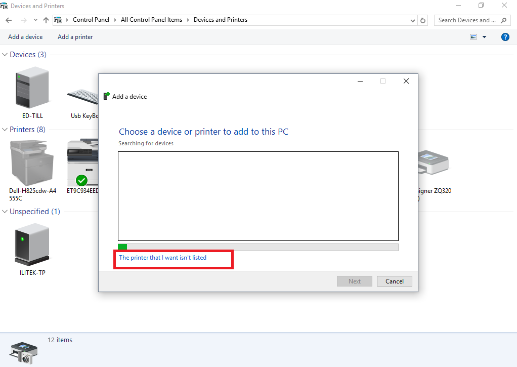 Click on Add a printer and new screen opens