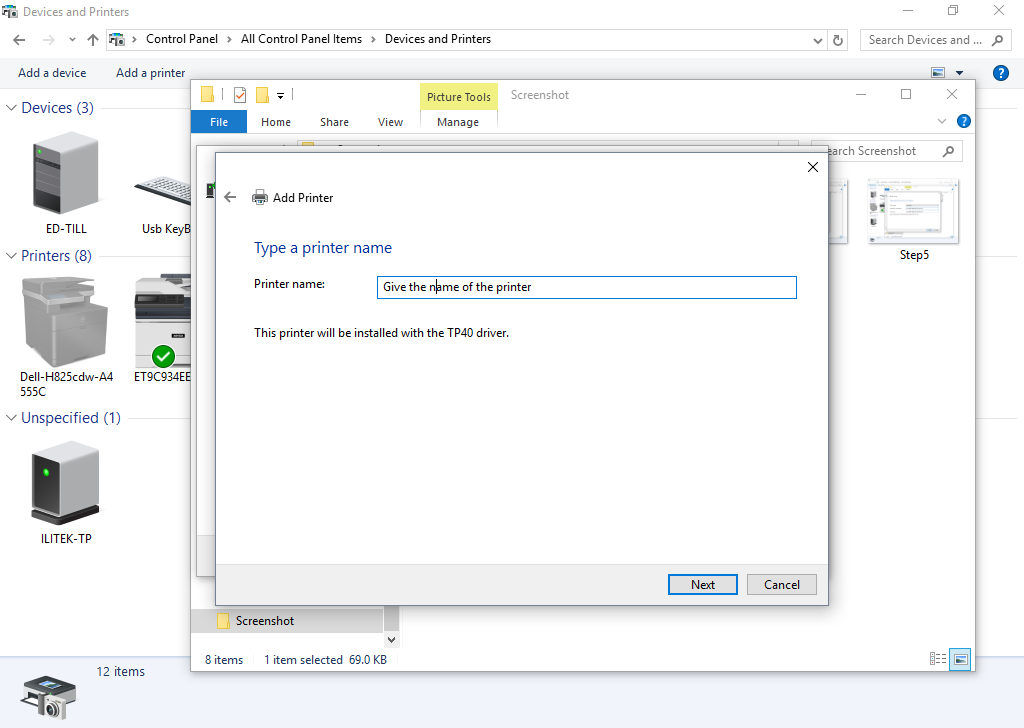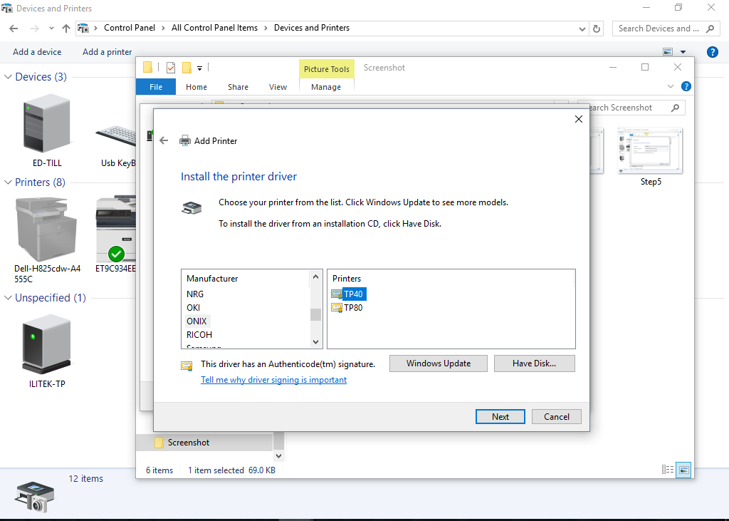 Select the ONIX and TP40 as the printer and click Next
