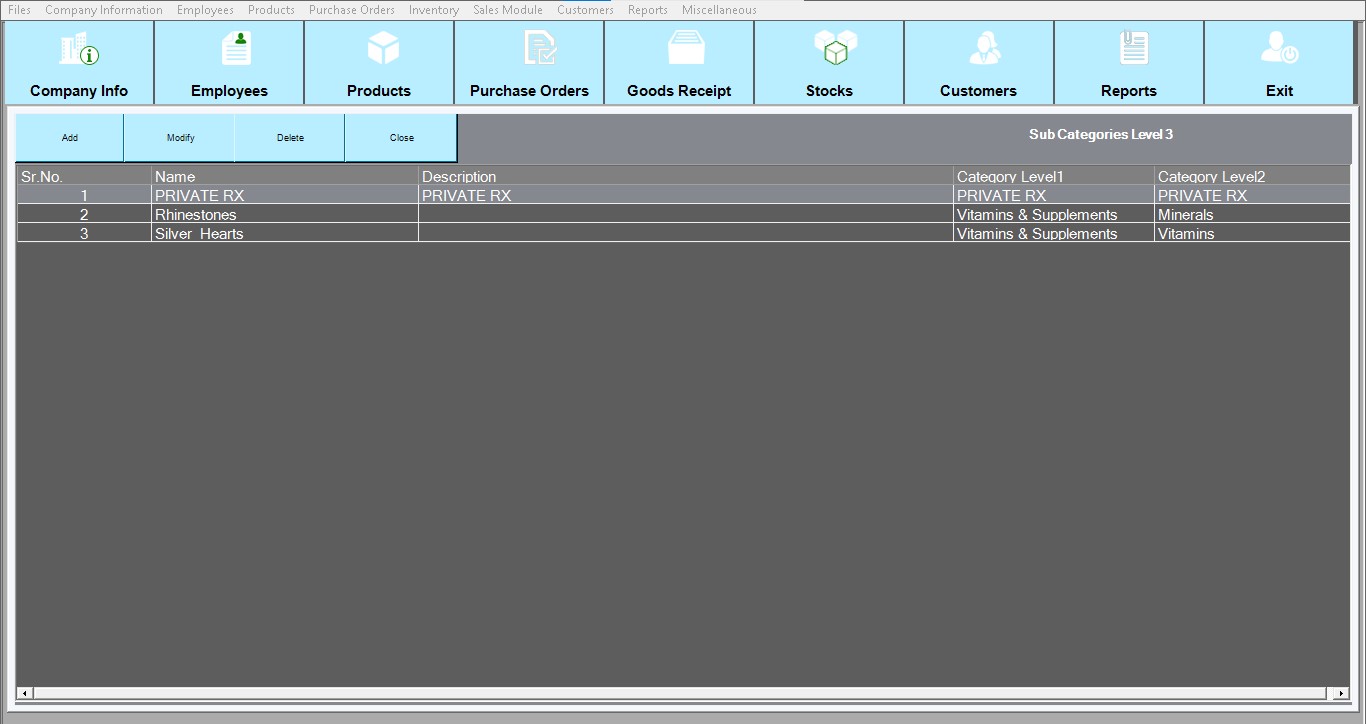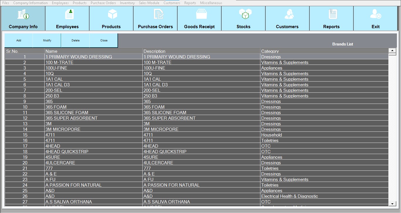 You can search the product by name, scanning the product barcode, product code, category, and sub-category and supplier name link to the product.