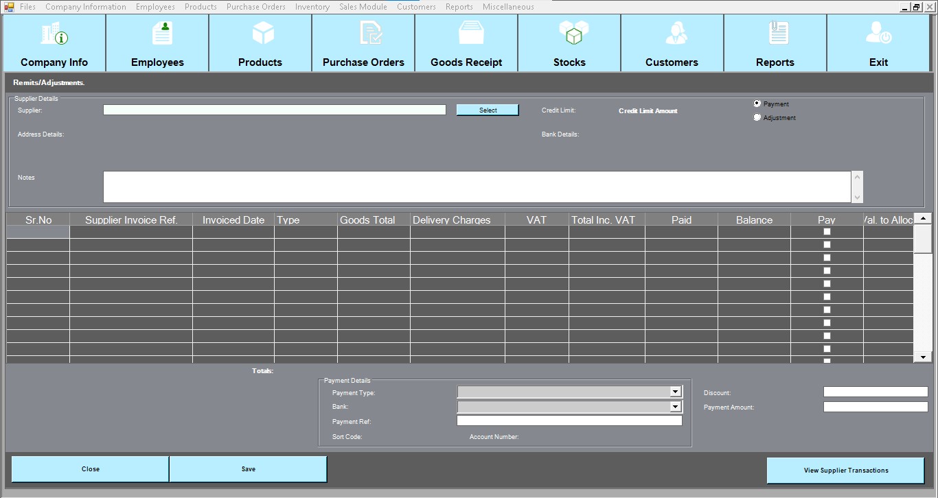 - Supplier Code; The supplier code is popped up in the field automatically when the supplier name is selected. If a New supplier has to be added, just click on new supplier, which opens up the supplier screen for addition.
