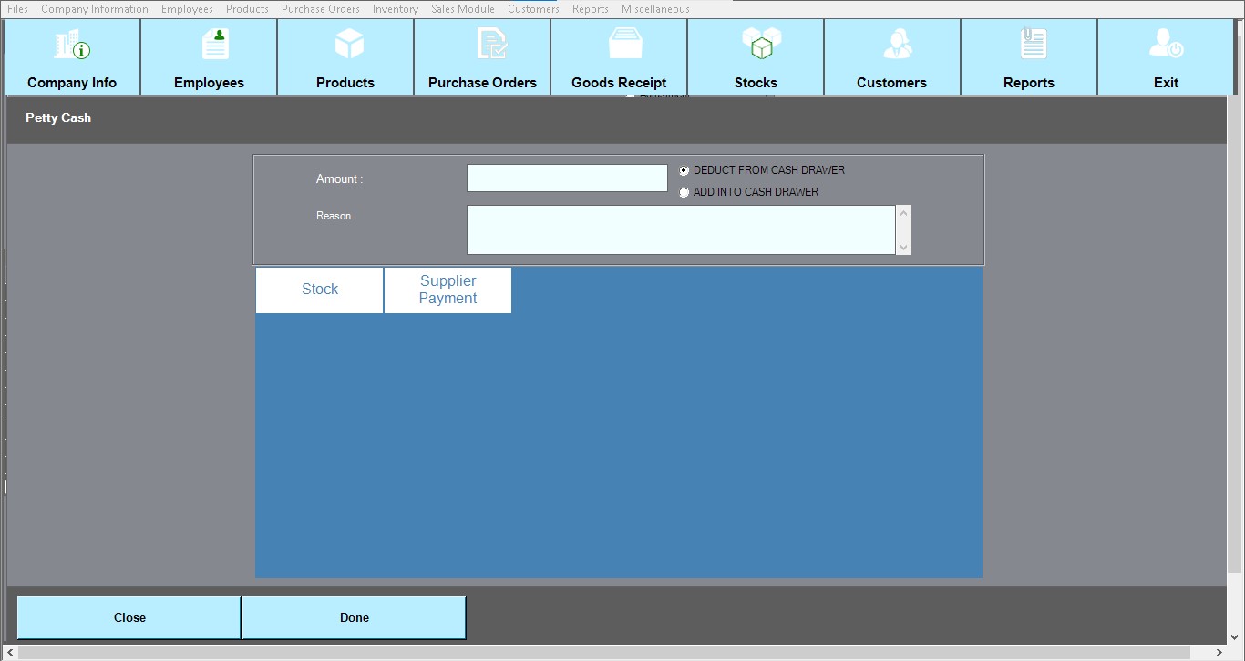 Retail admin software is also referred as a Back office, this software allows you to add your business details, create your login account, add your products/items and viewing the business performance report.
