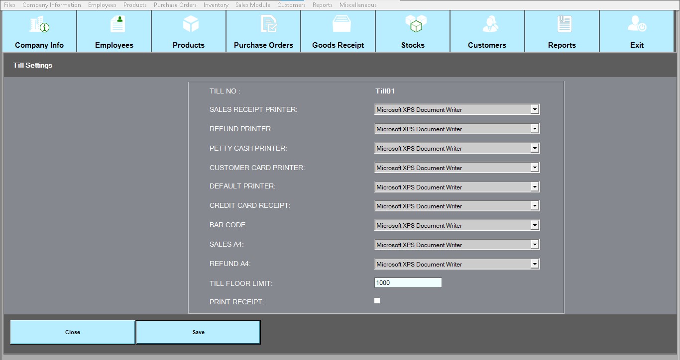 To set the printer to print receipt automatically tick the print receipt box however if receipt the needs to be printed whenever needed untick it that option then click on save after setting the till printer and float.