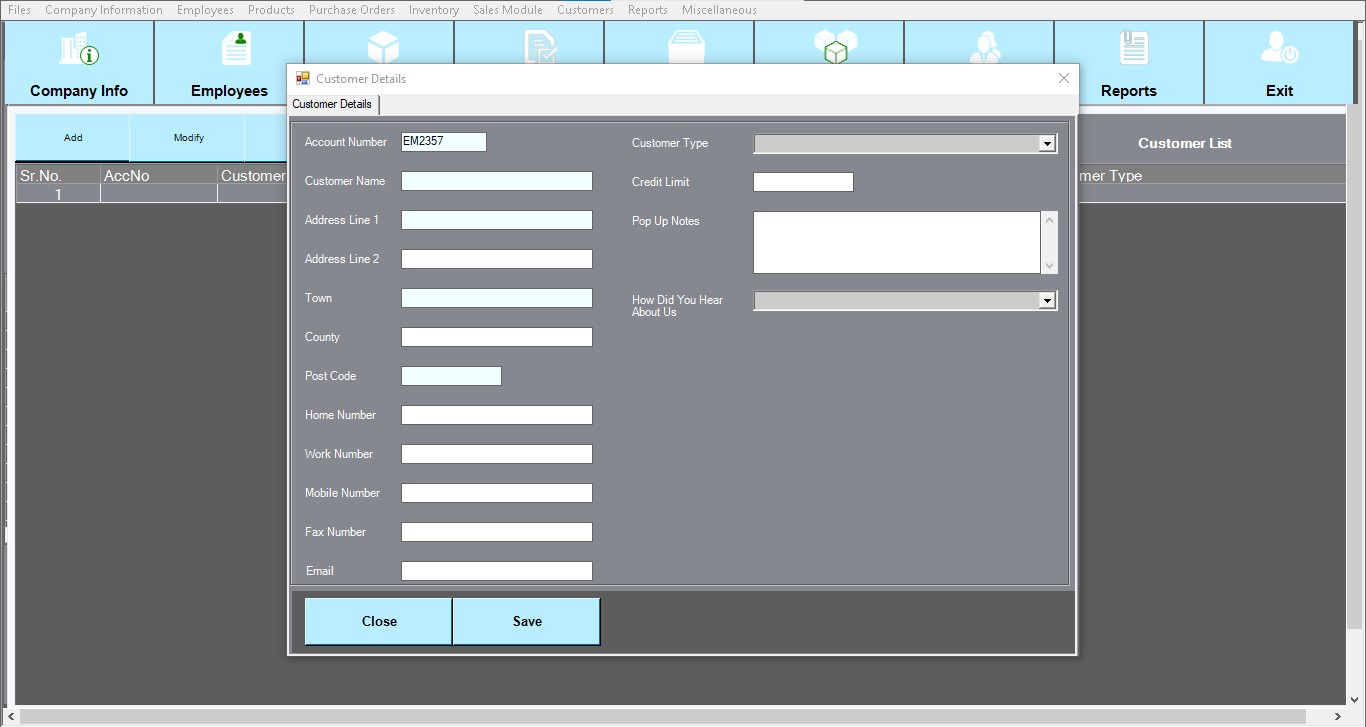 Next select the following employee to give access right, if it is just a staff member then select the sales modules and customer modules. However you still need to be selective when giving access from the sales module then save.